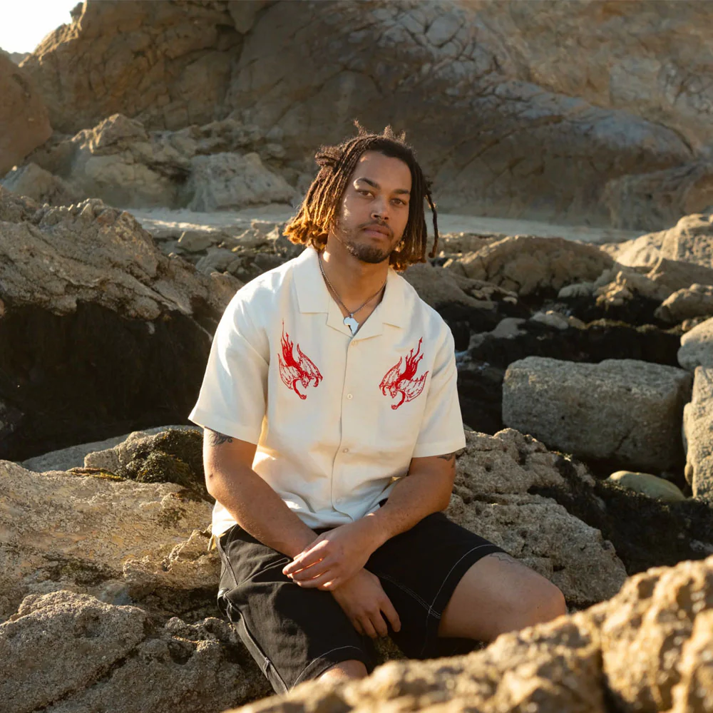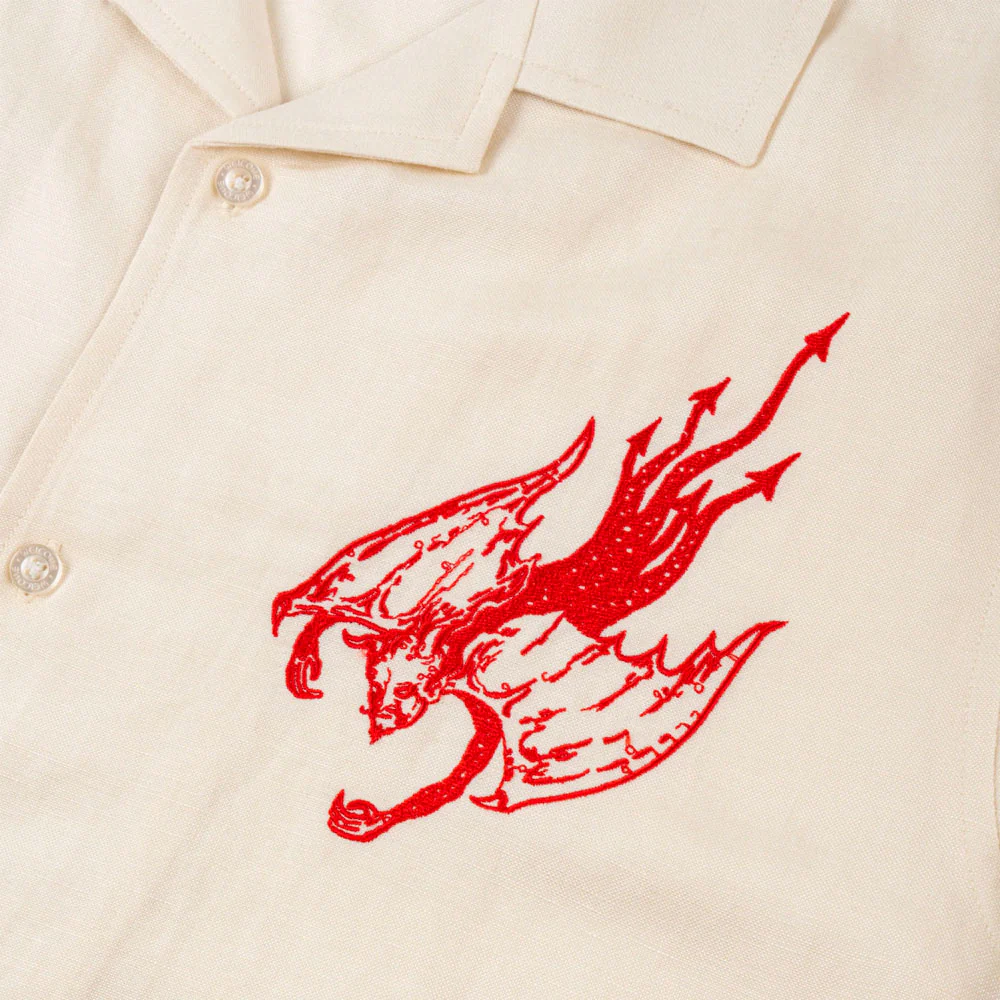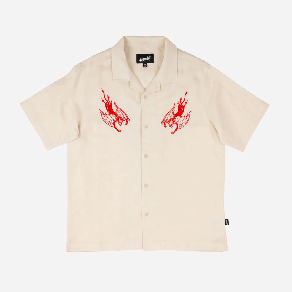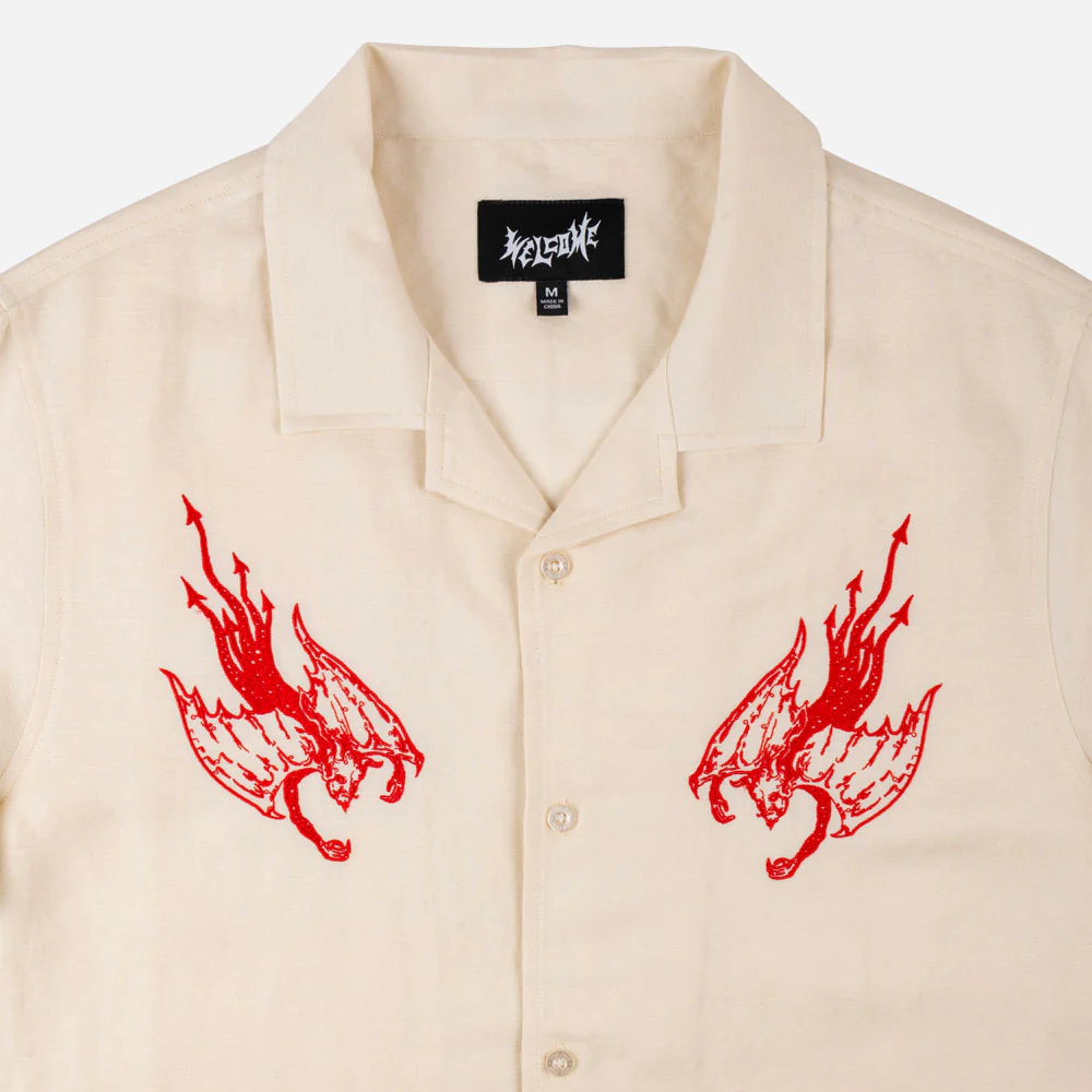 WELCOME SKATEBOARDS – HELLION EMBROIDERED LINEN SHIRT- Bone