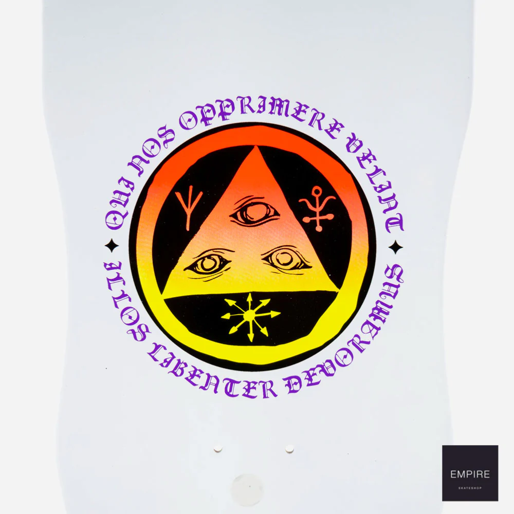WELCOME SKATEBOARDS TRIGER DARK LORD – WHITEPlanche de skate Welcome Skateboards réalisée sur un shape spécial fabriquée en bois d’érable canadien 7-plis et résine époxy.