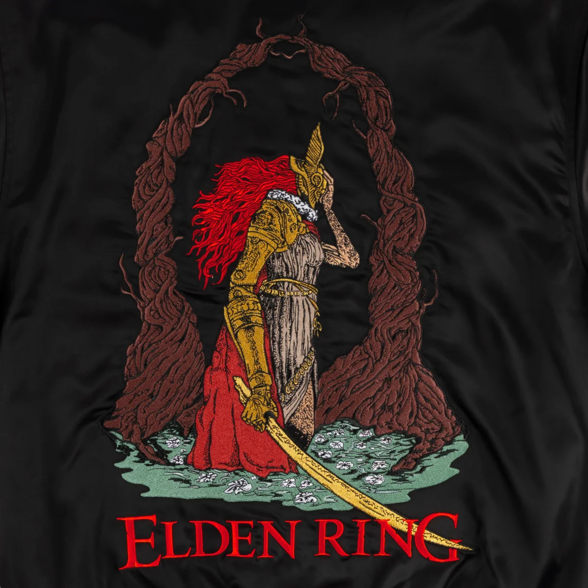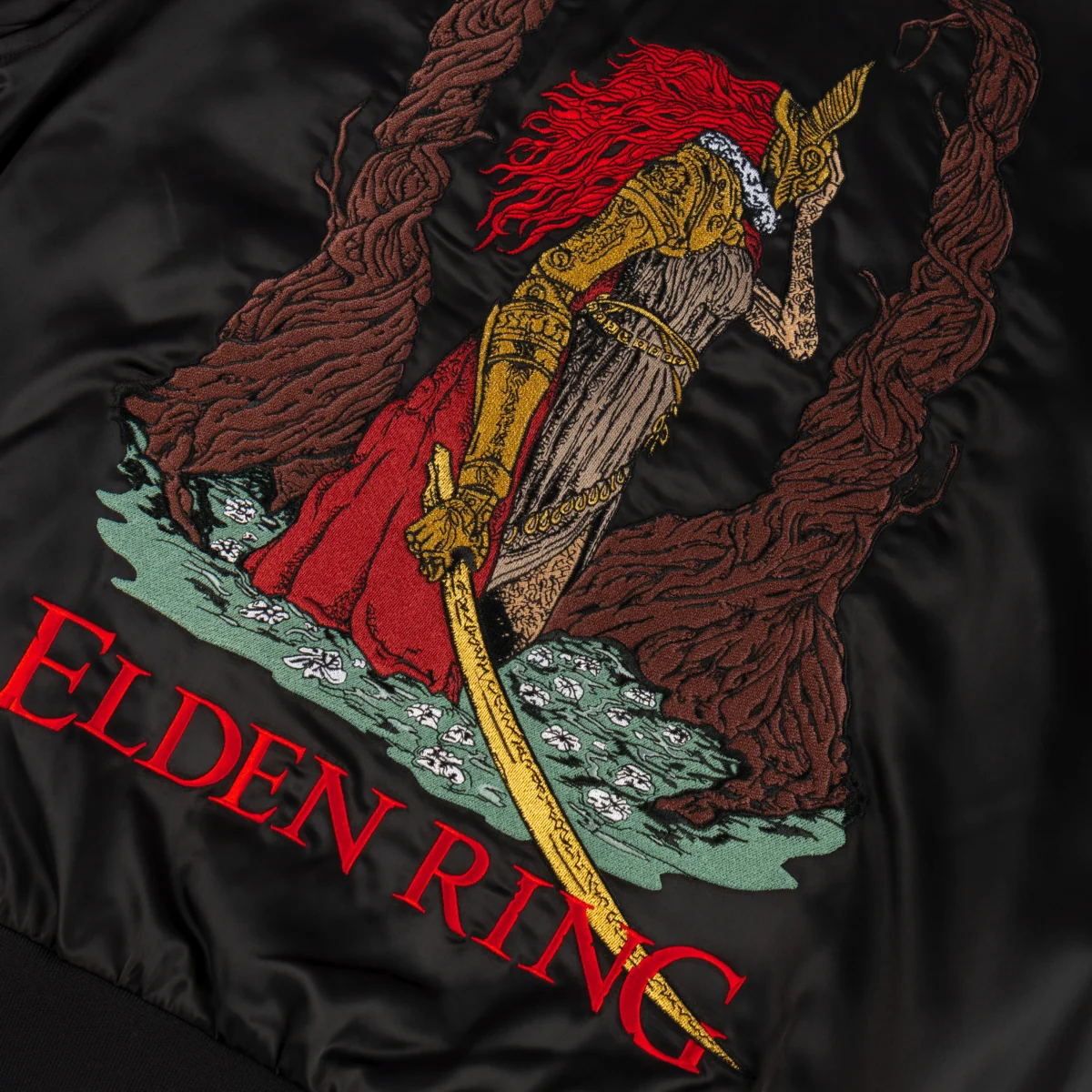 Welcome x Elden Ring – Malenia Embroidered Satin Souvenir Jacket – Black