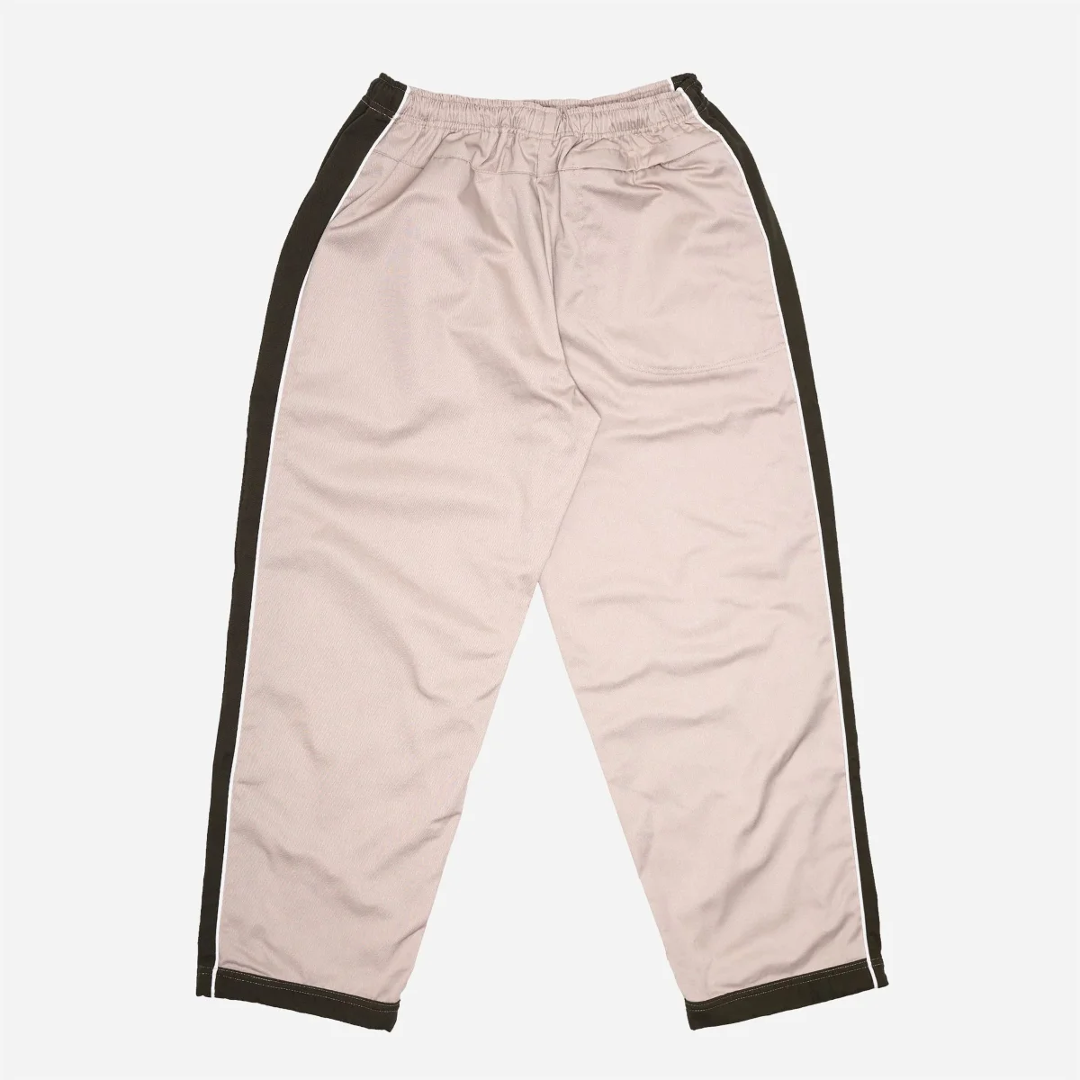 Pantalon avec une bande olive sur le côté et un passepoil blanc pour un look fun. Taille réglable grâce au cordon de serrage. Fermeture éclair cachée à l’intérieur des chevilles. Deux poches latérales et une poche arrière zippée pour garder vos essentiels en sécurité. Une étiquette tissée vient compléter le style sur la jambe gauche.