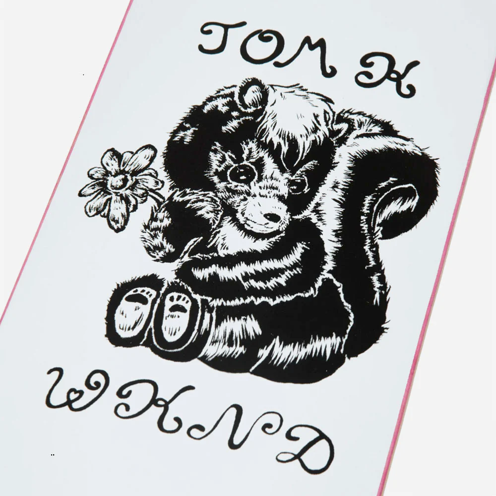 Planche de skateboard WKND 7-plis en bois d’érable canadien et résine époxy. Modèle du skateur pro Tom Karangelov. Shape classique. Visuel réalisé par Mason Howell. Livrée avec une feuille de grip.