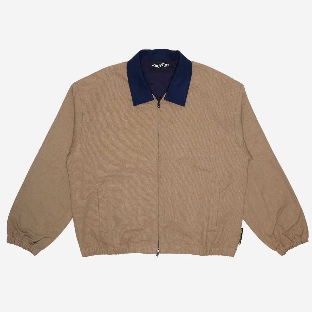 Cette veste présente un extérieur en toile kaki et une doublure intérieure en toile marine. Elle est dotée de poignets et d’ourlets extensibles pour une coupe confortable, de poches passepoilées latérales élégantes et d’une poche intérieure spacieuse, idéale pour ranger votre canette. Les doubles fermetures à glissière ajoutent au style et à la commodité, tandis qu’une étiquette tissée sur la couture latérale apporte une touche finale cool.