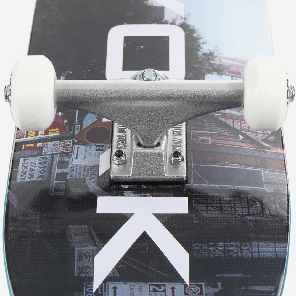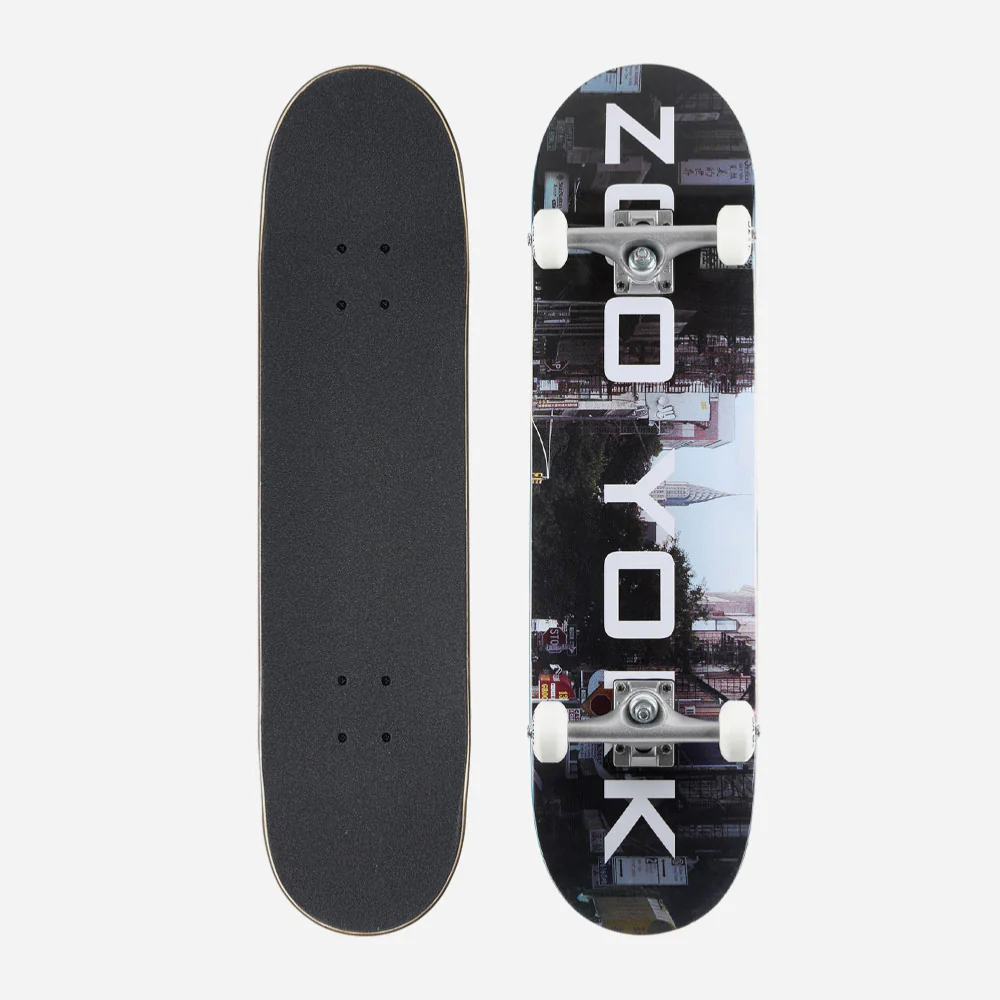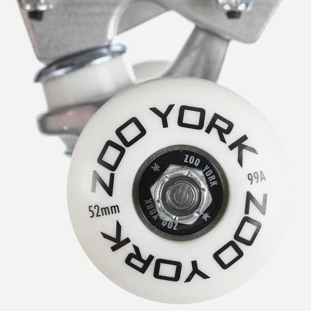 Skateboard complet Zoo York. Livré monté et prêt à l’emploi avec trucks, roues, roulements, grip et visserie. Shape classique. Parfait pour débuter et vous accompagner dans votre progression.